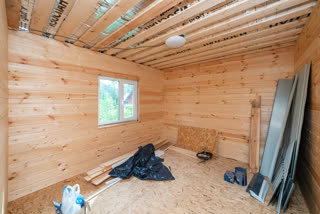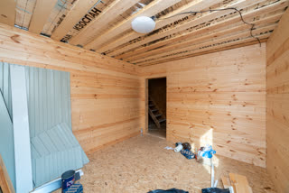 Внутренняя отделка имитация бруса/osb, второй этаж не отделан